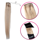 Unsere Clip-on-Tressen bestehen aus 100 % Remy-Echthaar – das steht für höchste Qualität, natürliche Optik und eine besonders lange Haltbarkeit. Die Tresse ist 50–55 cm lang, 15 cm breit und wiegt leichte 17,5 Gramm – ideal für angenehmen Tragekomfort und dennoch sichtbar mehr Volumen und Länge.